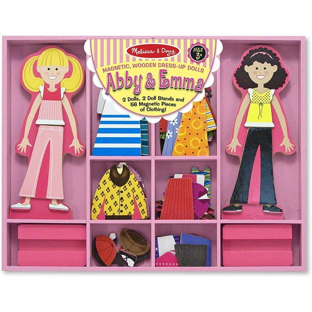 Melissa Doug Abby And Emma Deluxe Magnetic Wooden Dress Up Dolls Play Set 55 Pcs Walmart Com